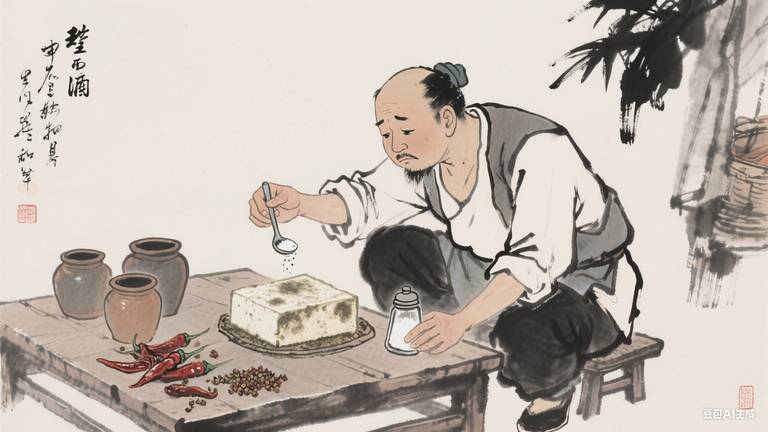 小贩发现豆腐发霉后,舍不得扔掉,决定用盐腌制。