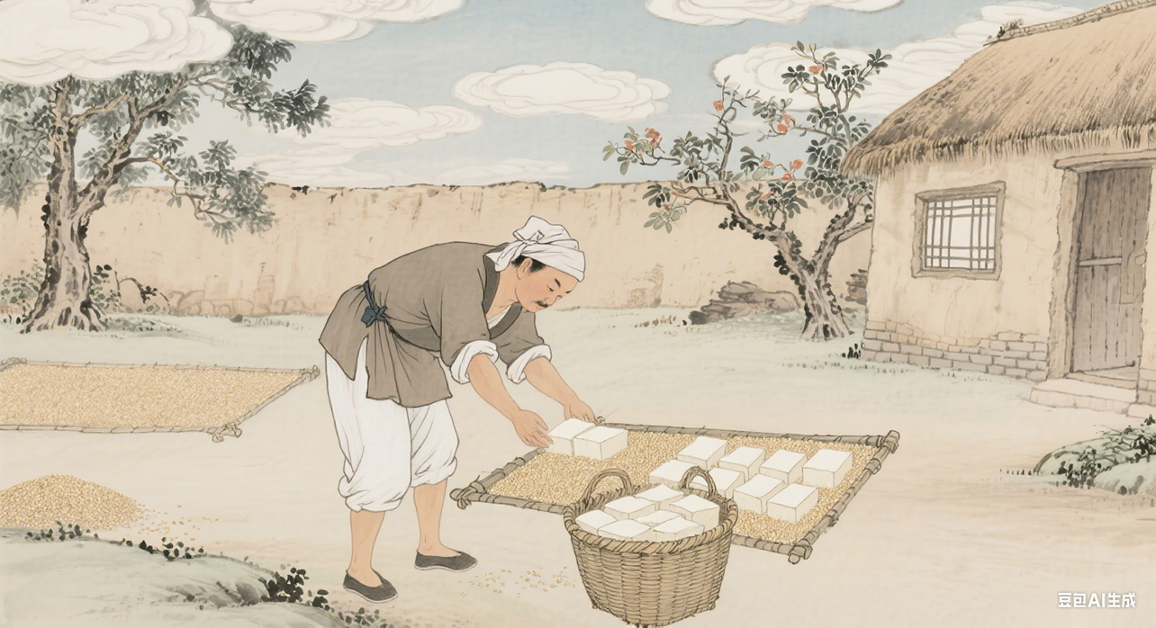 有一次小贩因忙于农务,家中的豆腐被遗忘了。