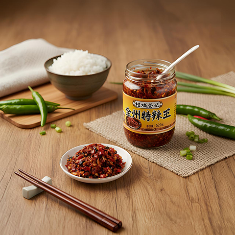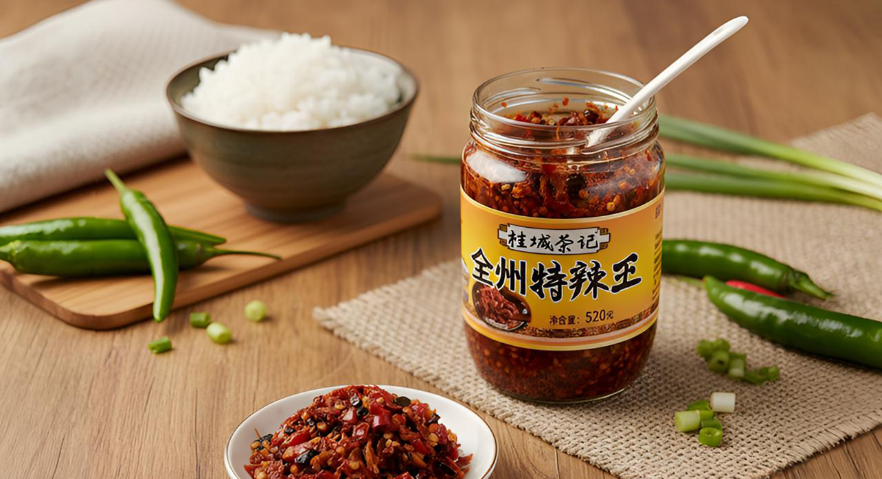 风味家族:多元选择适配不同味蕾 桂林辣椒酱因配料差异形成丰富品类,每款都有独特个性: 蒜蓉辣椒酱:基础经典款,以辣椒和大蒜为核心,突出鲜辣本味,辣度适中,新手友好。 豆豉辣椒酱:进阶风味款,加入发酵豆豉后咸香四溢,辣中带醇,越嚼越有层次,是 “桂林三宝” 礼盒的标配。 全州兴安剁椒酱:地域特色款,采用农家手工腌制,中辣后劲足,不呛口,发酵香气浓郁,且无防腐剂添加。 创意改良款:可加入干扁豆角增加嚼劲,或搭配刀豆丝丰富口感,满足个性化需求。